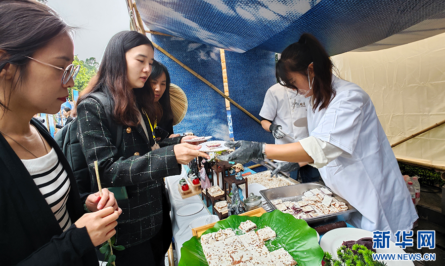 10月11日,嘉賓在茅臺(tái)酒節(jié)非遺市集品嘗美食。新華網(wǎng) 盧志佳 攝
