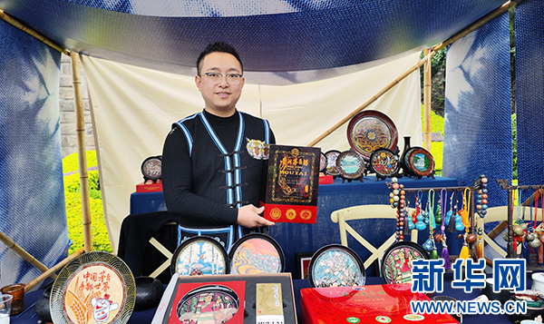10月11日,貴州大方漆器匠人在茅臺酒節(jié)展示用漆器工藝制作的茅臺酒包裝盒。新華網(wǎng) 盧志佳 攝