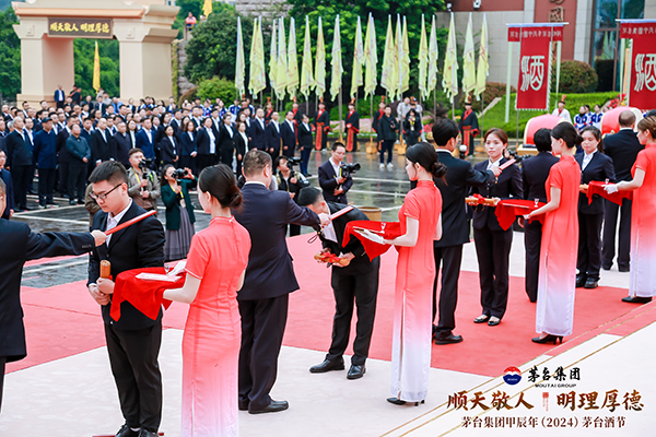 “金風(fēng)浩蕩,天遠氣清。茫茫寰宇,旨酒其醇?!碑?dāng)天上午9時09分,在典禮司儀的誦讀聲中,茅臺集團甲辰年(2024)茅臺酒節(jié)正式拉開帷幕。