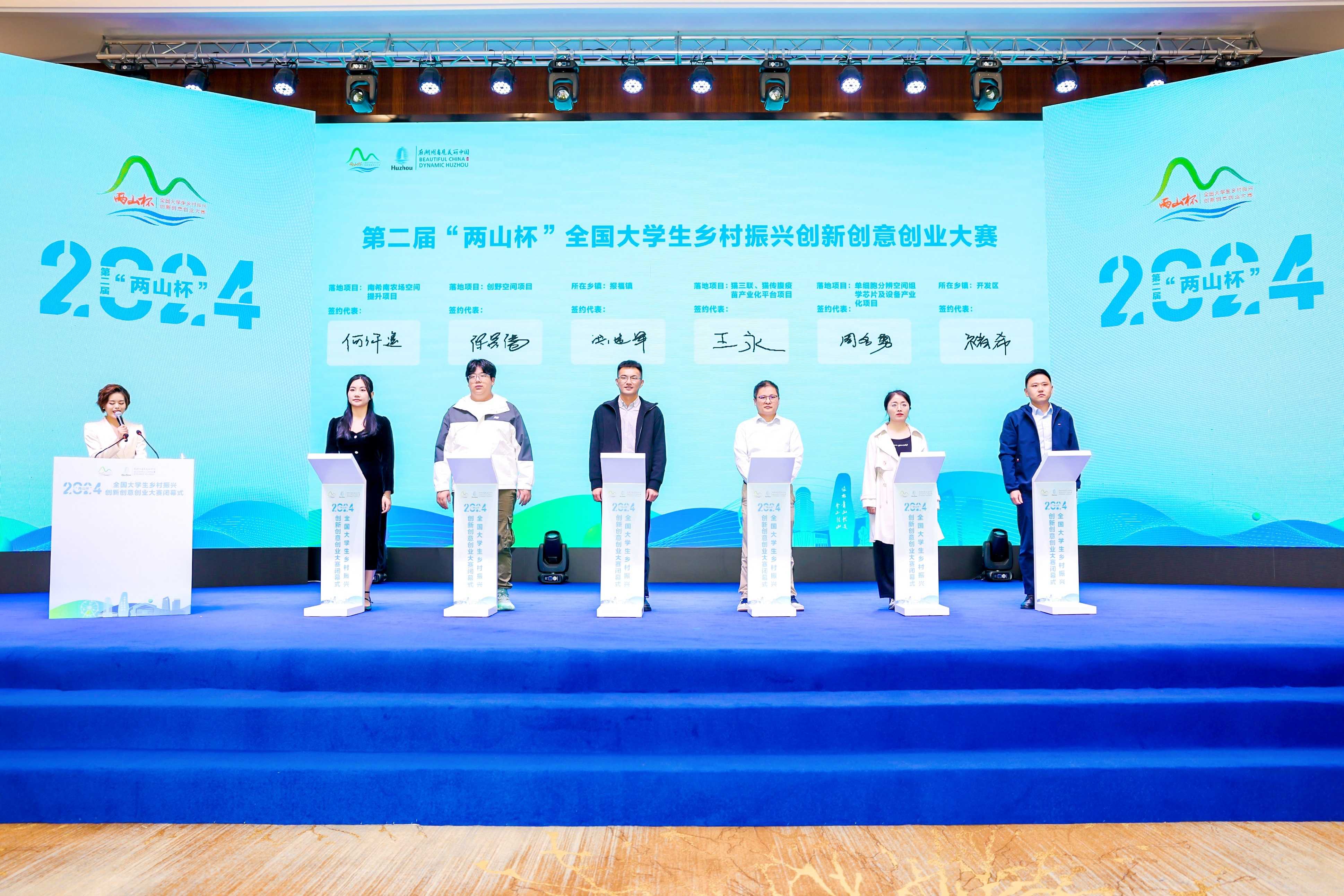 經(jīng)過初賽、復賽、決賽三級比拼,眾多優(yōu)秀參賽項目脫穎而出。閉幕式上,主辦方為部分優(yōu)秀項目團隊進行頒獎。其中,三等獎、二等獎團隊各8支,一等獎團隊4支。同時,8個落地項目代表與賽點鄉(xiāng)鎮(zhèn)進行了現(xiàn)場簽約。