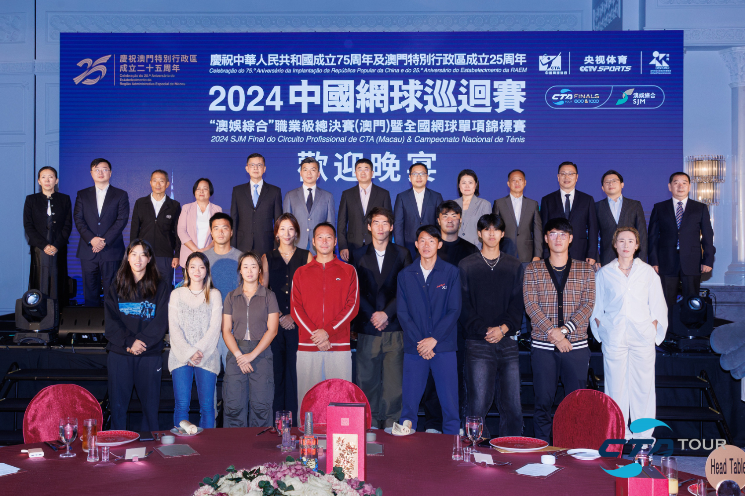 首日比賽結(jié)束后,中國(guó)網(wǎng)球巡回賽“澳娛綜合”職業(yè)級(jí)總決賽暨全國(guó)網(wǎng)球單項(xiàng)錦標(biāo)賽舉行了歡迎晚宴,冠軍獎(jiǎng)杯和吉祥物共同亮相,吸引眾多與會(huì)嘉賓和球員合影留念。國(guó)窖1573為本次賽事特別定制了“澳然揮拍”“Panda 1573”“逍遙之飲”三款中式調(diào)酒,獨(dú)特的造型和濃香馥郁、層次豐富的口感為晚宴增添了別樣風(fēng)味。