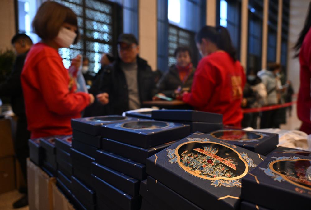 12月3日,觀眾在中國國家博物館排隊(duì)購買鳳冠冰箱貼。新華社記者 金良快 攝