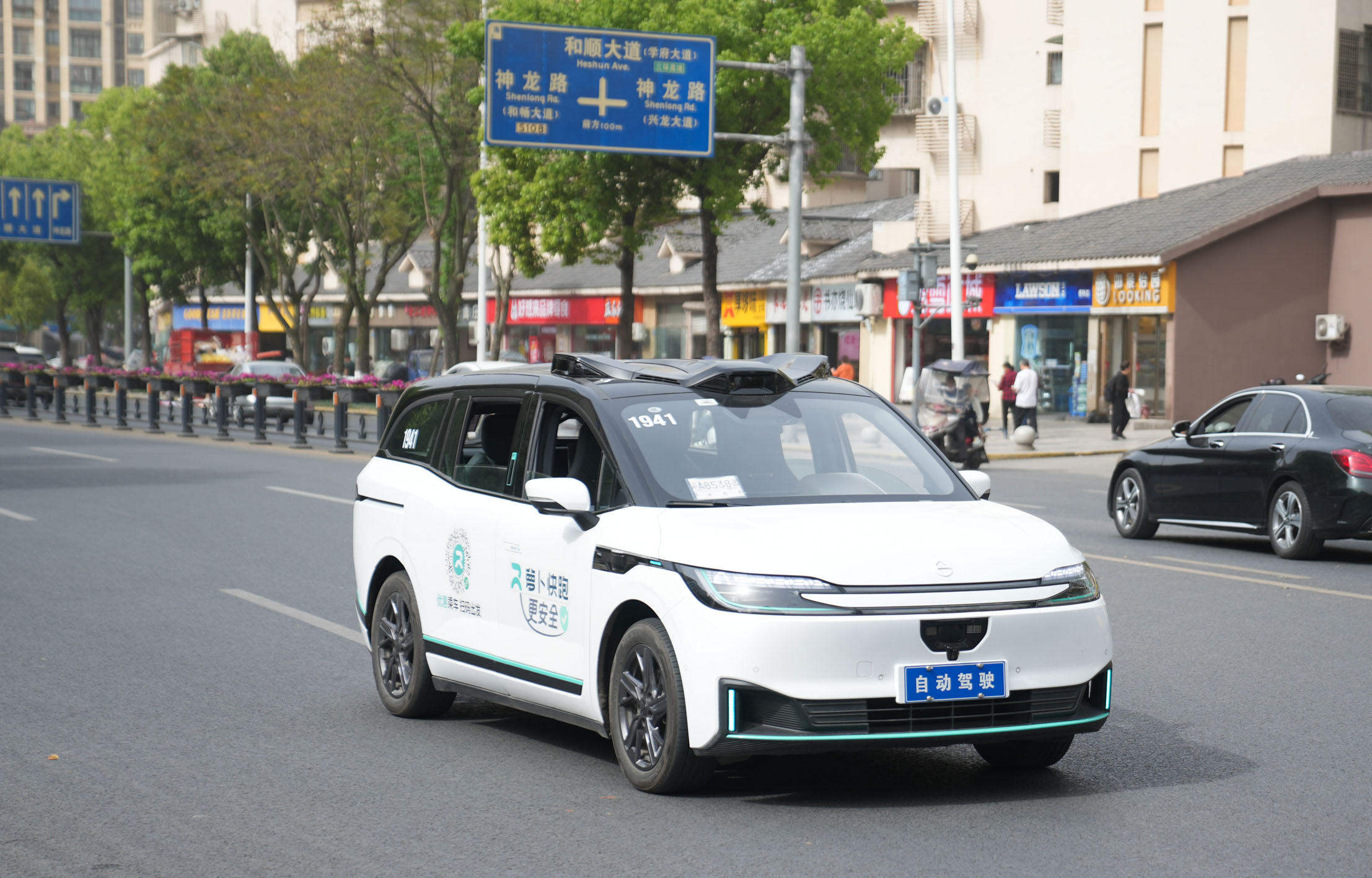 一輛自動駕駛網(wǎng)約車行駛在重慶永川城區(qū)?!⌒氯A社發(fā)(陳安鑫 攝)