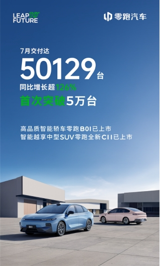 2025年上半年,零跑交付新車221664臺,較2024年同期交付量增長155.7%,增長了約1.56倍。零跑汽車方面表示其位居中國新勢力品牌銷量榜首。