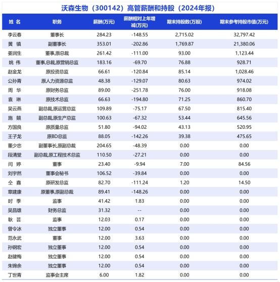 圖:沃森生物董監(jiān)高薪酬及持股情況(2024年報) 資料來源:Wind 制表:郭新志