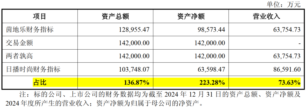 由上表可知,茵地樂的資產(chǎn)總額、資產(chǎn)凈額均超上市公司100%,營收占比為73.63%、購買資產(chǎn)發(fā)行的股份數(shù)量占比不足70%,以孰高原則取值,此次交易構(gòu)成重大資產(chǎn)重組。