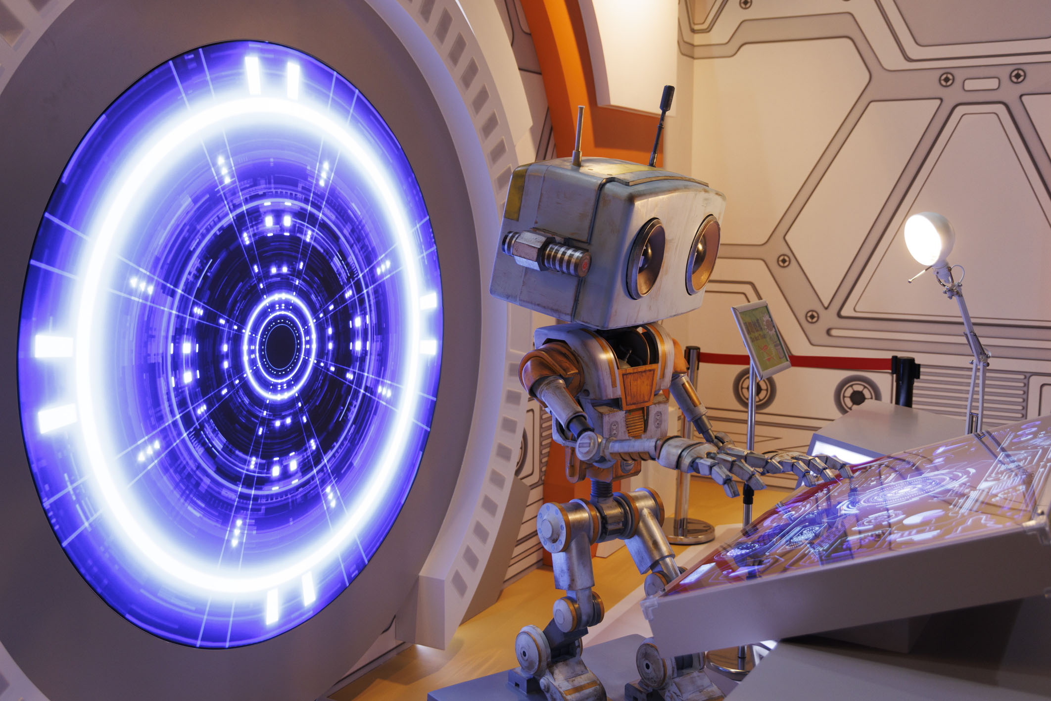 圖為2025年6月28日在中國(guó)科學(xué)技術(shù)館《Project X:星際友好計(jì)劃》航天科幻擴(kuò)展現(xiàn)實(shí)(XR)大空間體驗(yàn)展拍攝的人工智能機(jī)器人星啟8號(hào)。新華社記者 金立旺 攝