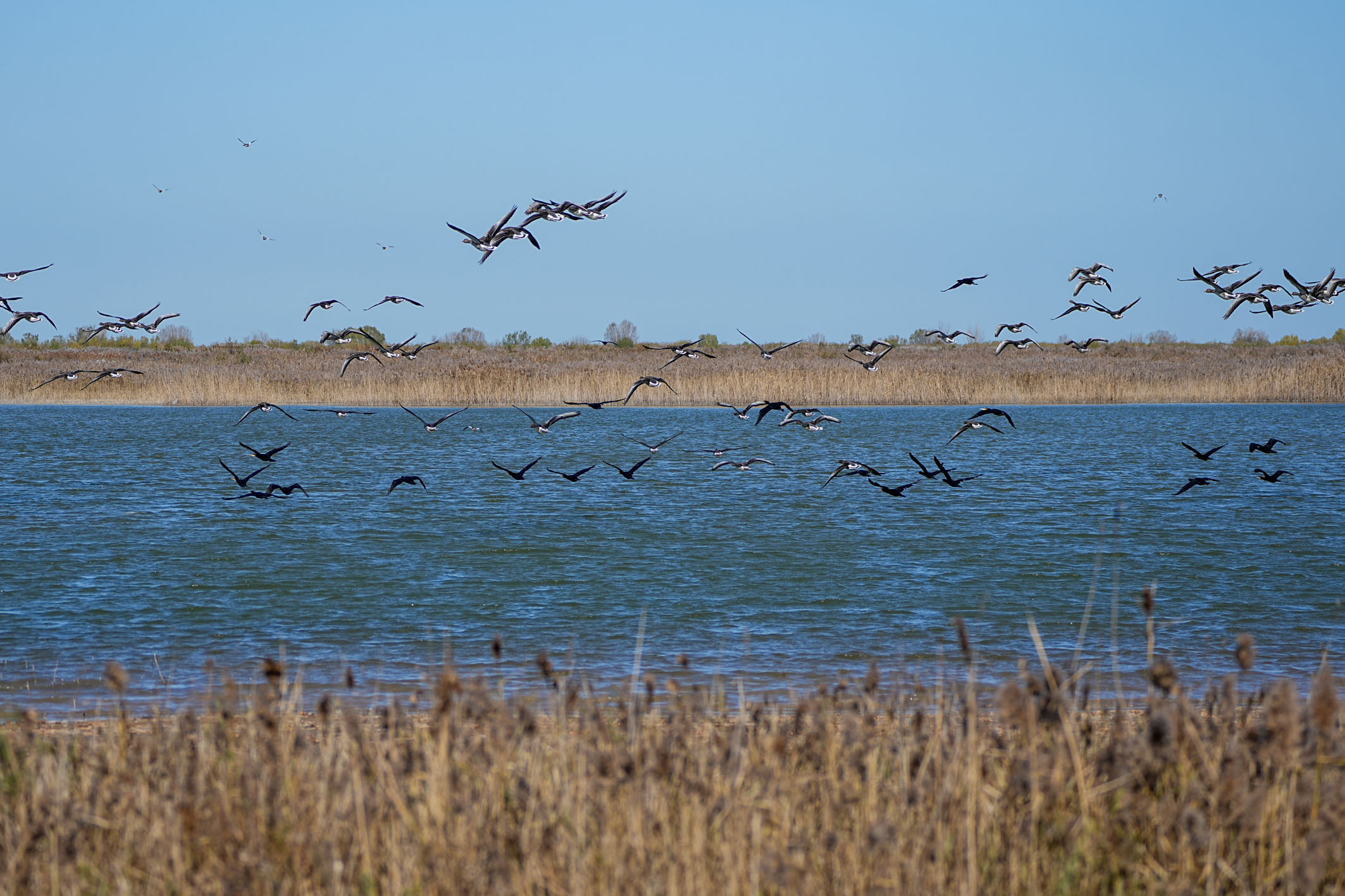 黃河三角洲國(guó)家級(jí)自然保護(hù)區(qū)內(nèi),越冬候鳥(niǎo)在飛翔。記者 朱崢 攝