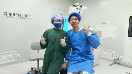 2025年5月15日,方學(xué)軍完成了東北首例全飛秒SMILE pro近視手術(shù)。圖為與患者的術(shù)后合影。