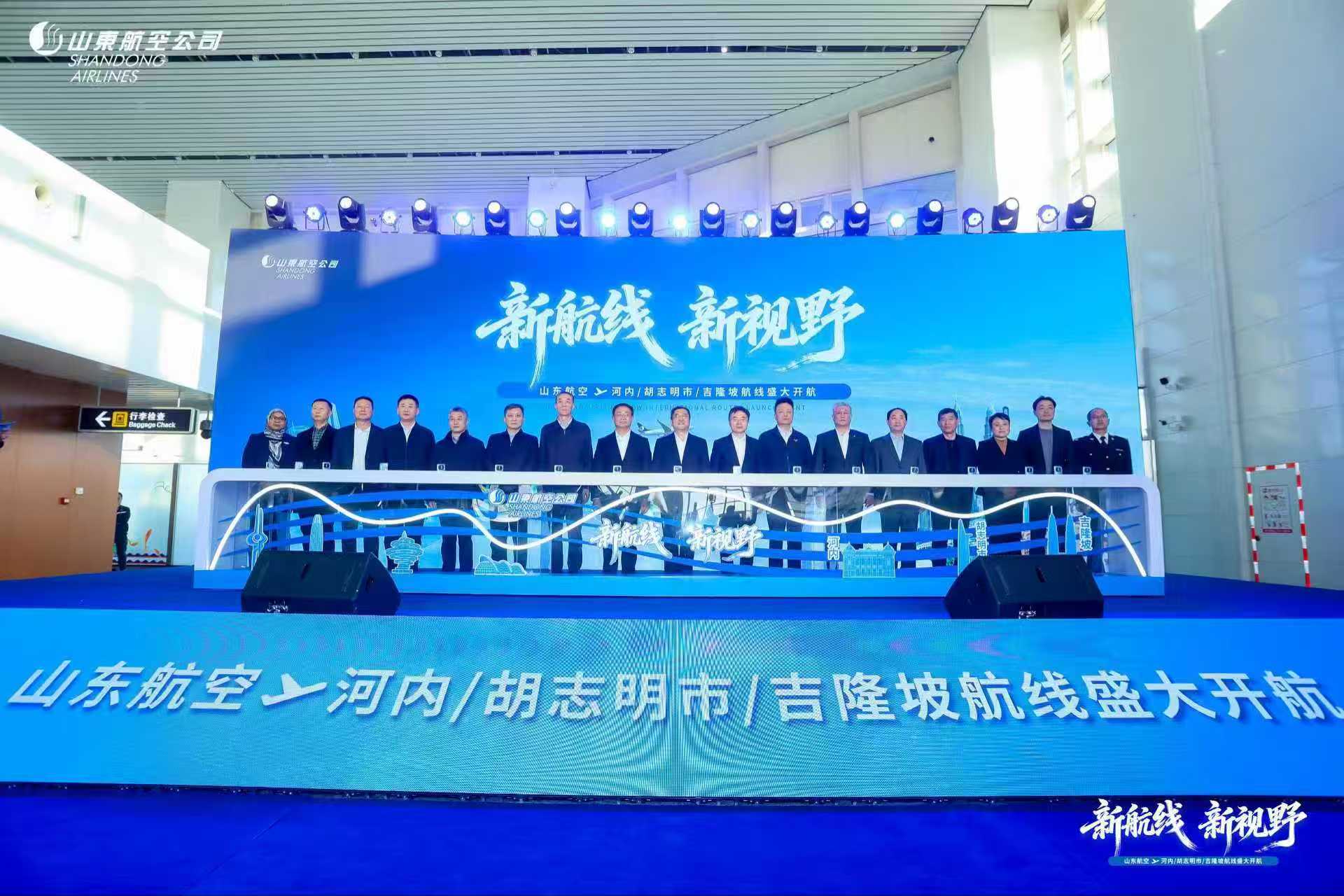1月15日,山東航空集團(tuán)在濟(jì)南遙墻國(guó)際機(jī)場(chǎng)舉辦“新航線·新視野”國(guó)際航線開航發(fā)布會(huì):正式宣布開通濟(jì)南?河內(nèi)、濟(jì)南?胡志明市、濟(jì)南?吉隆坡、青島?胡志明市、青島?河內(nèi)航線五條東南亞直達(dá)航線。山東省交通運(yùn)輸廳、商務(wù)廳和文旅廳等相關(guān)部門,民航監(jiān)管機(jī)構(gòu)、空管單位、口岸聯(lián)檢機(jī)構(gòu)及機(jī)場(chǎng)、航司代表近百人出席活動(dòng)。