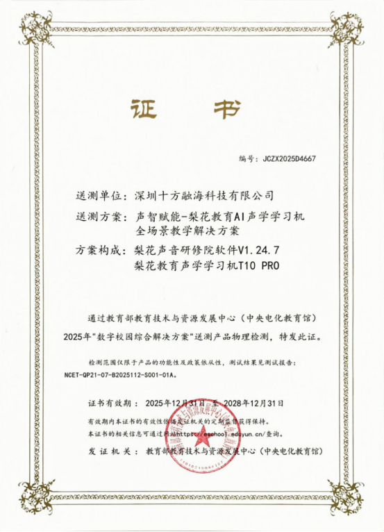 近日,教育部教育技術(shù)與資源發(fā)展中心(中央電化教育館)正式公布2025年“數(shù)字校園綜合解決方案”測(cè)試合格名單。由十方融海梨花教育自主研發(fā)的“聲智賦能——梨花教育AI聲學(xué)學(xué)習(xí)機(jī)全場(chǎng)景教學(xué)解決方案”,憑借其創(chuàng)新的軟硬件協(xié)同設(shè)計(jì)與卓越性能,成功入選該名單,成為服務(wù)于中老年群體文化素養(yǎng)提升的領(lǐng)先數(shù)字化教學(xué)方案之一。