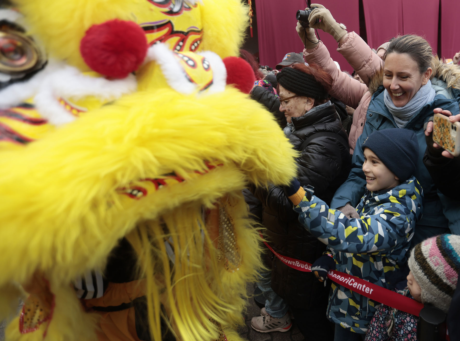 近日,2026“歡樂春節(jié)”匈牙利唐人街新春廟會在匈牙利首都布達佩斯開幕。圖為人們在唐人街新春廟會上觀看舞獅。