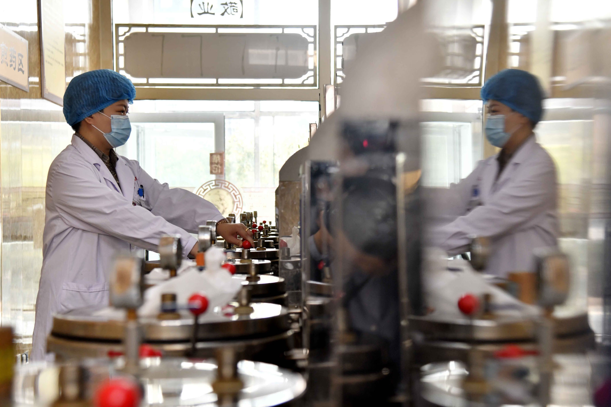 圖為山東省威海市文登區(qū)人民醫(yī)院醫(yī)共體中藥配送中心,工作人員在炮制中藥。資料圖片