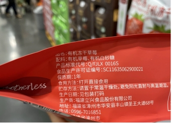 有網(wǎng)友發(fā)現(xiàn),山姆會員超市此前售賣的一款“Botherless 有機(jī)凍干草莓”的生產(chǎn)商和上述媒體報(bào)道中被檢測出農(nóng)殘、重金屬超標(biāo)的凍干草莓疑是同一家。