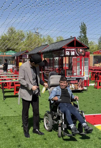 攤主是一位肢體殘疾的維吾爾族大叔和一位智力障礙的回族姑娘。這是努爾買買提聯(lián)合天山區(qū)殘聯(lián)進(jìn)行的精準(zhǔn)幫扶實驗。天山區(qū)殘疾人就業(yè)所副所長鄭衛(wèi)戰(zhàn)介紹說:“我們在網(wǎng)上發(fā)布相關(guān)信息后,‘利歐納先生’主動聯(lián)系到我們進(jìn)行這次幫扶?!敝鲃泳柚珱]有主動傳播,努爾買買提是想以此為樣本,探索如何讓不同背景的困難群體在商業(yè)中通過合作獲得尊嚴(yán)。