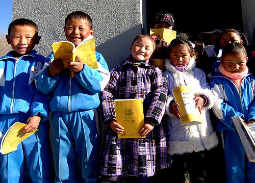3月5日,西藏堆龍德慶縣桑木鄉(xiāng)桑木村教學(xué)點(diǎn)的孩子們拿到免費(fèi)的新課本、作業(yè)本。 日前,教育部公布的消息稱:春季學(xué)期中央財(cái)政應(yīng)承擔(dān)的免除學(xué)雜費(fèi)、補(bǔ)助學(xué)校公用經(jīng)費(fèi)的資金為92億元,為貧困生免費(fèi)提供教科書(shū)的資金為14億元,已經(jīng)預(yù)撥到各地。
