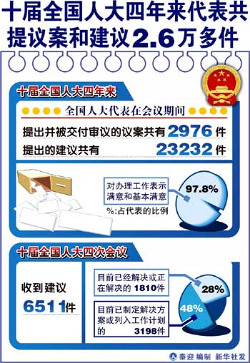 十屆全國人大四年來代表共提議案和建議2.6萬多件