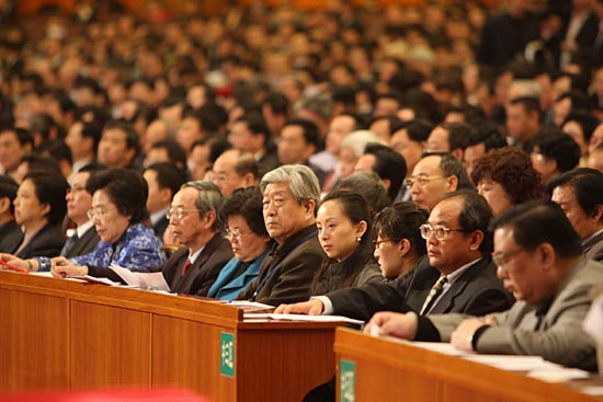 | 3月3日,中國人民政治協(xié)商會議第十一屆全國委員會第一次會議在北京人民大會堂開幕。這是委員們在認真聽會。新華社記者
