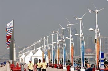 | 奧林匹克帆船中心安裝了168盞太陽能景觀燈、41盞風(fēng)能路燈,體現(xiàn)了“綠色奧運”的主題。新華社記者 趙穎全