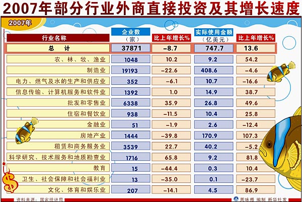 世界銀行在分析中國引資政策和環(huán)境后發(fā)表的《中國利用外資的前景和戰(zhàn)略研究》報告中指出,2006年至2010年期間,中國將占到預計流入發(fā)展中國家的2500億美元外商直接投資(FDI)的30%左右。照此流量,張銳按產(chǎn)業(yè)轉(zhuǎn)移理論分析,跨國公司產(chǎn)業(yè)轉(zhuǎn)移一般遵循先制造業(yè)后服務業(yè),然后是研發(fā)中心的遞進過程。目前,外企進入中國已經(jīng)完成了第一階段進入了第二階段。 中國自加入WTO以后,市場變得更加開放,外資也開始向國內(nèi)不同產(chǎn)業(yè)擴展。來自中美商會的統(tǒng)計表明,目前,服務業(yè)、物流、銀行和旅游已成為美商投資的新增長點。 在金融服務方面,更多外資銀行在中國增設了分公司,外資參股中國銀行業(yè)的規(guī)模迅速擴大,農(nóng)村市場向外資敞開了大門。在物流方面,越來越多的外國物流企業(yè)來華投資,中國也相應的為外資物流企業(yè)出臺了指南及一套物流企業(yè)國家標準。特別是伴隨著制造業(yè)與物流業(yè)的融合,物流供應鏈越來越成為一個炙手可熱的產(chǎn)業(yè),稀缺的物流網(wǎng)絡資源將吊起外企的新胃口。在航空方面,中美商會出臺的2007年白皮書中說,預計未來20年里,中國民航業(yè)將繼續(xù)以每年高于9%的速度增長。照此,中國將很快成為繼美國之后世界第二大民用航空市場,從而為美國供應商提供極大的商業(yè)機會。 有資料表明,從現(xiàn)在至2010年,包括工程承包、設計咨詢、技術(shù)轉(zhuǎn)讓和物流運輸在內(nèi)的中國服務貿(mào)易業(yè)將保持年均20%以上的增長態(tài)勢。這給全球的各種外資提供了機會。