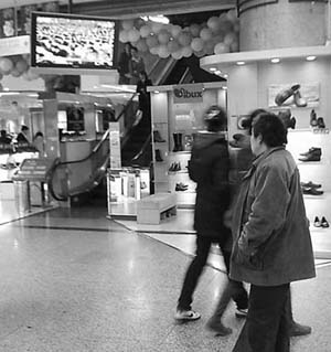 在藍(lán)島商場(chǎng)的東區(qū),液晶電視正對(duì)著大門,播放的正是第十一屆全國人民代表大會(huì)第一次會(huì)議開幕的實(shí)況轉(zhuǎn)播,幾乎每一位進(jìn)來的人都被電視上的畫面和聲音吸引。 從藍(lán)島東區(qū)到西區(qū),所有的電視機(jī)旁,都吸引著不少顧客,有的顧客即使在選商品挑衣服,耳朵仍然在聽著溫總理的聲音,聽到感興趣的地方,他們會(huì)抿抿嘴、笑一笑,或者干脆放下手中的物品,抬頭看一眼身旁的電視屏幕。 來自安徽的小劉在附近建筑工地做工,趁工休來藍(lán)島逛逛,當(dāng)溫總理講到“多渠道增加農(nóng)民收入,確保農(nóng)民工工資按時(shí)足額發(fā)放”時(shí),他正好就在電視機(jī)的旁邊!皩(duì)于我們來說,年底能拿到工資,能踏踏實(shí)實(shí)回家團(tuán)聚就很滿足了,溫總理的話讓人很安心。”他說。