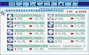 預(yù)算報(bào)告顯示,涉及民生、科學(xué)技術(shù)、環(huán)保以及糧油物資儲(chǔ)備等方面的支出均超預(yù)算。具體來看,教育支出1076.35億元,增長(zhǎng)76%,完成預(yù)算的125.4%;科學(xué)技術(shù)支出999.99億元,增長(zhǎng)26%,完成預(yù)算的113.5%;社會(huì)保障和就業(yè)支出2303.16億元,增長(zhǎng)13.7%,完成預(yù)算的114.1%;環(huán)境保護(hù)支出782.1億元,增長(zhǎng)61%,完成預(yù)算的164.7%;農(nóng)林水事務(wù)支出1274.49億元,增長(zhǎng)43.9%,完成預(yù)算的106.2%;工業(yè)商業(yè)金融等事務(wù)(包括安全生產(chǎn)、糧棉油等重要物資儲(chǔ)備、解決政策性糧食財(cái)務(wù)掛賬本息等方面的事務(wù))支出2429.16億元,增長(zhǎng)41%,完成預(yù)算的127.9%;對(duì)地方稅收返還和財(cái)力性轉(zhuǎn)移支付支出10924.35億元,增長(zhǎng)21.2%,完成預(yù)算的108.1%。