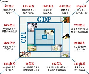 根據(jù)今年的預(yù)算安排,教育支出將達(dá)1561.76億元,增長(zhǎng)45.1%;科學(xué)技術(shù)支出1133.98億元,按可比口徑增長(zhǎng)26%;社會(huì)保障和就業(yè)支出2761.61億元,按可比口徑增長(zhǎng)24.2%;醫(yī)療衛(wèi)生支出831.58億元,增長(zhǎng)25.2%;環(huán)境保護(hù)支出1027.51億元,增長(zhǎng)31.4%;農(nóng)林水事務(wù)支出1450.49億元,按可比口徑增長(zhǎng)17.2%;工業(yè)商業(yè)金融等事務(wù)(包括安全生產(chǎn)、糧棉油等重要物資儲(chǔ)備、解決政策性糧食財(cái)務(wù)掛賬本息等方面的事務(wù))支出3373.24億元,增長(zhǎng)38.9%;國防支出4099.4億元,增長(zhǎng)17.7%;一般公共服務(wù)支出2655.4億元,增長(zhǎng)14.3%,其中國內(nèi)外債務(wù)付息1235.66億元,增長(zhǎng)24.4%;對(duì)地方稅收返還和財(cái)力性轉(zhuǎn)移支付12317.81億元,增長(zhǎng)12.8%。