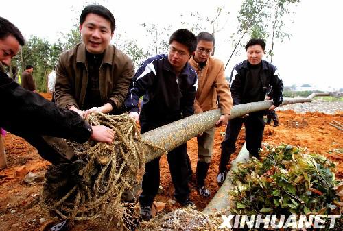 [影像鏈接] 這是福州市倉山區(qū)干部群眾在道路兩側種植景觀樹(2007年3月18日攝)。新華社發(fā)