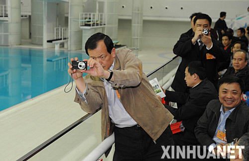 3月12日,出席全國政協(xié)十一屆一次會(huì)議的部分全國政協(xié)委員參觀北京奧運(yùn)場館。這是委員們?cè)趪矣斡攫^內(nèi)參觀。