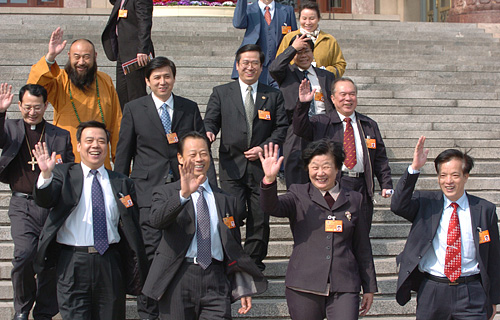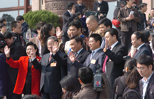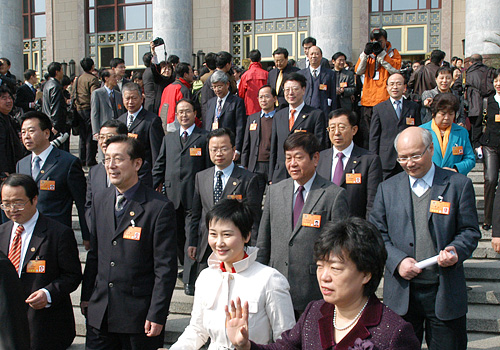 3月14日,中國(guó)人民政治協(xié)商會(huì)議第十一屆全國(guó)委員會(huì)第一次會(huì)議在北京人民大會(huì)堂舉行閉幕會(huì)。圖為會(huì)后委員們走出人民大會(huì)堂。