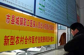一名病人家屬正在蘭州市榆中縣第一人民醫(yī)院咨詢相關(guān)情況(2007年1月24日攝)。 根據(jù)3月5日提請十屆全國人大五次會議審查的2007年中央和地方預(yù)算草案,今年中央財政總支出將達(dá)26871.08億元。這些支出將會花在哪些地方?全國人大代表和普通百姓都很關(guān)注!叭≈诿瘢弥诿瘛,“著力解決民生問題”,“讓全體人民享受改革發(fā)展成果和公共財政陽光”,是預(yù)算草案最突出的理念。強(qiáng)化支農(nóng)惠農(nóng)政策、增加就業(yè)和社會保障支出、解決“上學(xué)難、上學(xué)貴”和“看病難、看病貴”等問題……把草案中有關(guān)民生問題的支出內(nèi)容串在一起,就凝聚為一份引人注目的中央財政“民生清單”。新華社發(fā) |