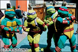 大約20年前,以紐約這座繁華都市為主要場景的《忍者神龜》動畫片進入中國,一代青少年立即成為“龜粉”,而且趁機了解了一下美國都市文化:原來紐約的少年兒童和四大神龜一樣,都愛吃比薩餅,很多美國孩子的代步工具不是自行車而是滑板。當時,任天堂游戲機在國內剛開始普及,以四大神龜為主人公的游戲卡相當難找。北京的很多家長為了滿足孩子的愿望,特地托出差的同事到廣東那邊去買。記得當時的相關游戲不叫《忍者神龜》,而是《激龜忍者》,里面的小烏龜個個都有“必殺技”,對付守在關底的惡勢力頭頭最為管用。