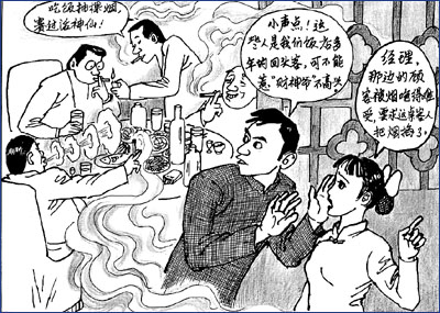 隨著人們對(duì)健康意識(shí)的普遍增強(qiáng),對(duì)餐廳“禁煙”的要求也愈加強(qiáng)烈,2008年國(guó)家提出了“無(wú)煙奧運(yùn)”的概念,規(guī)定相關(guān)的餐廳等場(chǎng)所要“禁煙”。但是一些餐廳首先考慮的是利潤(rùn),擔(dān)心餐廳控?zé)煏?huì)影響營(yíng)業(yè)額,也有些食客固守吃飯抽煙的習(xí)慣不想改掉,使“無(wú)煙餐廳”至今尚未全面“開(kāi)花結(jié)果”?磥(lái),“餐廳等場(chǎng)所禁煙”,除了有關(guān)部門(mén)檢查監(jiān)督外,某些煙民也應(yīng)轉(zhuǎn)變老習(xí)慣,養(yǎng)成文明行為才行。