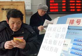 10月16日開(kāi)始,2006年第二期儲(chǔ)蓄國(guó)債開(kāi)始在各家銀行發(fā)售,盡管與以往銷售火暴的場(chǎng)面相比本期國(guó)債略顯冷清,但許多銀行還是出現(xiàn)了排隊(duì)場(chǎng)面。