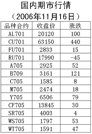 16日國內期貨市場除滬膠701微跌外,其他的工業(yè)品種和農業(yè)品種皆以紅盤報收。