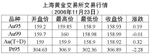 23日,上海黃金交易所黃金Au99.95收盤于158.93元/克,上漲0.19元/克,共成交3152公斤;黃金Au99.99收盤于158.99元/克,下跌0.01元/克,共成交398.80公斤;黃金Au(T+D)延期交易品種收盤于158.92元/克,上漲0.32元/克,共成交2912公斤;鉑金Pt99.95收盤于306.89元/克,下跌2.28元/克,共成交346公斤。