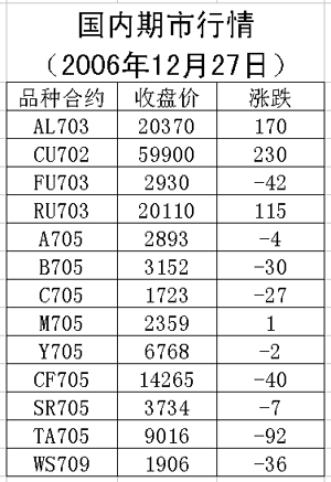 27日國內(nèi)期貨市場上海品種上漲,其余品種下跌。倫敦市場昨日仍在假期。滬銅702合約今日上漲230元/噸,收盤59900元/噸。滬鋁703合約今日上漲170元/噸,收盤20370元/噸。鋁價漲勢沒有結(jié)束多單應持有。