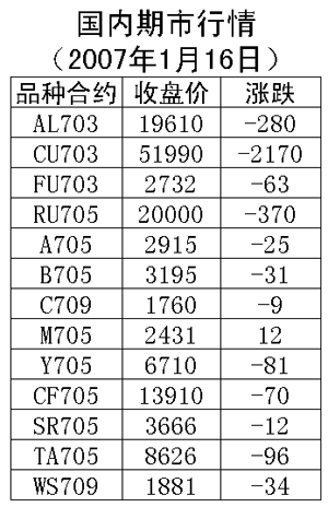 16日國內(nèi)期貨市場除豆粕外其余品種均下跌。