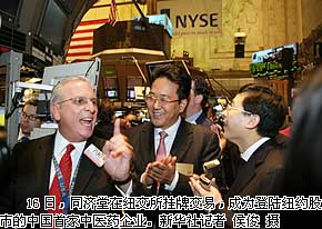 擁有上百年歷史的中國(guó)中藥企業(yè)——同濟(jì)堂藥業(yè)有限公司的股票16日正式在紐約證券交易所掛牌交易,這是我國(guó)首家在紐約股市上市的中藥企業(yè),也是今年以來在紐交所登陸的首家中國(guó)企業(yè)。 同濟(jì)堂這次共發(fā)行美國(guó)存托股份986.5萬股(每股存托股份等于4股普通股),募集資金近1億美元,其上市主承銷商是美林證券和瑞士銀行。 同濟(jì)堂藥業(yè)有限公司的前身是在國(guó)內(nèi)中藥行業(yè)聞名遐邇的老字號(hào)貴陽(yáng)同濟(jì)堂,該企業(yè)創(chuàng)辦于1888年,距今已有逾百年的歷史,F(xiàn)今的同濟(jì)堂已發(fā)展為集科研、生產(chǎn)、銷售、種植為一體的現(xiàn)代制藥企業(yè),生產(chǎn)中、西藥品種近50種,擁有發(fā)明專利、自主知識(shí)產(chǎn)權(quán)的產(chǎn)品8種。 同濟(jì)堂藥業(yè)董事長(zhǎng)兼首席執(zhí)行官王曉春說,同濟(jì)堂成功在美上市是中國(guó)傳統(tǒng)中醫(yī)中藥與現(xiàn)代資本市場(chǎng)的完美結(jié)合,它有利于提高企業(yè)知名度,把中醫(yī)中藥帶給美國(guó)以至全球的投資和消費(fèi)者。 紐交所總裁兼聯(lián)合首席運(yùn)營(yíng)官凱瑟琳·金尼在接受本報(bào)記者采訪時(shí)說,中國(guó)中藥企業(yè)在紐交所上市具有重要意義。目前已有不少優(yōu)秀的中國(guó)企業(yè)在紐交所上市,受到了投資者的歡迎,她期望更多的中國(guó)企業(yè)來美融資上市。 目前,在紐交所上市的中國(guó)企業(yè)已達(dá)21家,中國(guó)已成為亞洲在紐交所上市企業(yè)數(shù)量最多的國(guó)家。