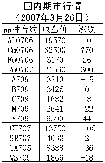 3月26日國內(nèi)期貨市場金屬、能源價格上漲,農(nóng)產(chǎn)品價格下跌。