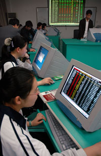 3月30日,杭州啟正中學的學生在上股市投資課。