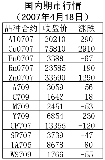 18日國內(nèi)期貨市場金屬上漲,能源、農(nóng)產(chǎn)品價(jià)格下跌。倫敦銅周二上漲315美元/噸,收盤8085美元/噸。滬銅707合約周三上漲2910元/噸,收盤75810元/噸達(dá)到漲停板,明日漲跌幅度擴(kuò)大到5%,支撐價(jià)位73000元一線,上漲壓力80000元一線。倫敦鋁周二上漲52美元/噸,收盤2885美元/噸。滬鋁707合約周三上漲290元/噸,收盤20210元/噸,支撐價(jià)位20000元一線,上漲壓力20400元一線。