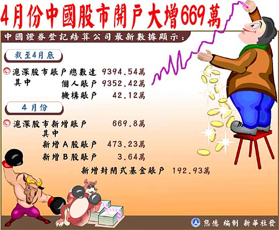 [圖表新聞]四月份中國股市開戶大增669萬