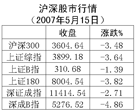 在管理層集中提示風(fēng)險(xiǎn)后,滬深股市15日雙雙大幅下跌,跌幅分別達(dá)到3.64%和2.71%。權(quán)重指標(biāo)股板塊當(dāng)日全線下挫,金融板塊領(lǐng)跌大盤。