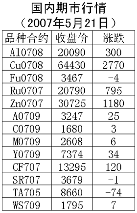 21日,國(guó)內(nèi)期貨市場(chǎng)燃油下跌,其余品種均上漲。
