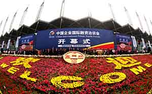| 6日,中國(guó)企業(yè)國(guó)際融資洽談會(huì)在天津?yàn)I海新區(qū)開(kāi)幕。新華社記者 劉海峰