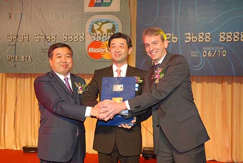 最近,華夏銀行消息面看點(diǎn)較多。一是華夏銀行高層變動(dòng)。日前,華夏銀行公告稱,董事會(huì)已通過決議,同意劉海燕董事長(zhǎng)的辭職,并通過選舉黨委書記翟鴻祥為董事候選人。有預(yù)測(cè)認(rèn)為,如無(wú)意外,翟鴻祥將成為下一任董事長(zhǎng)人選,F(xiàn)年61歲的翟鴻祥于今年5月底辭去了北京市常務(wù)副市長(zhǎng)的職務(wù),十分熟悉金融業(yè)。 二是華夏銀行與德意志銀行的合作成果顯著。德意志銀行所持股份占總股本的7.02%,其旗下子公司德意志銀行盧森堡股份有限公司持有總股本2.88%的股份,薩爾奧彭海姆股份有限合伙企業(yè)將持有4.08%的股份。目前華夏銀行與德意志銀行的合作正在有序推進(jìn),雙方在貿(mào)易融資、外幣清算、基金代銷、人員培訓(xùn)等方面的合作已取得初步成果。 圖為華夏銀行副行長(zhǎng)李國(guó)鵬、德意志銀行私人和工商金融企業(yè)金融服務(wù)部亞太區(qū)總裁謝鵬德向華夏銀行信用卡中心首席執(zhí)行官侯平授卡,標(biāo)志著華夏銀行信用卡業(yè)務(wù)正式啟動(dòng)。 |