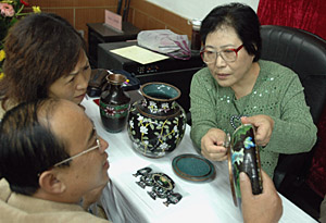 | 作為文物資源大國,我國并不缺乏文物鑒定專業(yè)隊伍,“十一”黃金周期間,故宮博物院副研究員劉靜(右一)在為收藏者鑒定一套瓷器。新華社記者