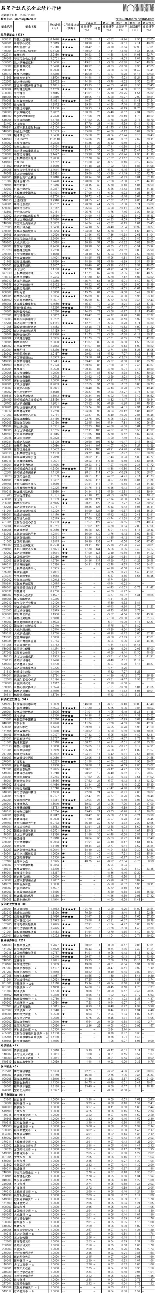 晨星開放式基金業(yè)績(jī)排行榜[2007-11-09]