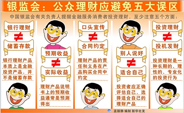 銀監(jiān)會(huì):公眾理財(cái)應(yīng)避免五大誤區(qū)[圖表]